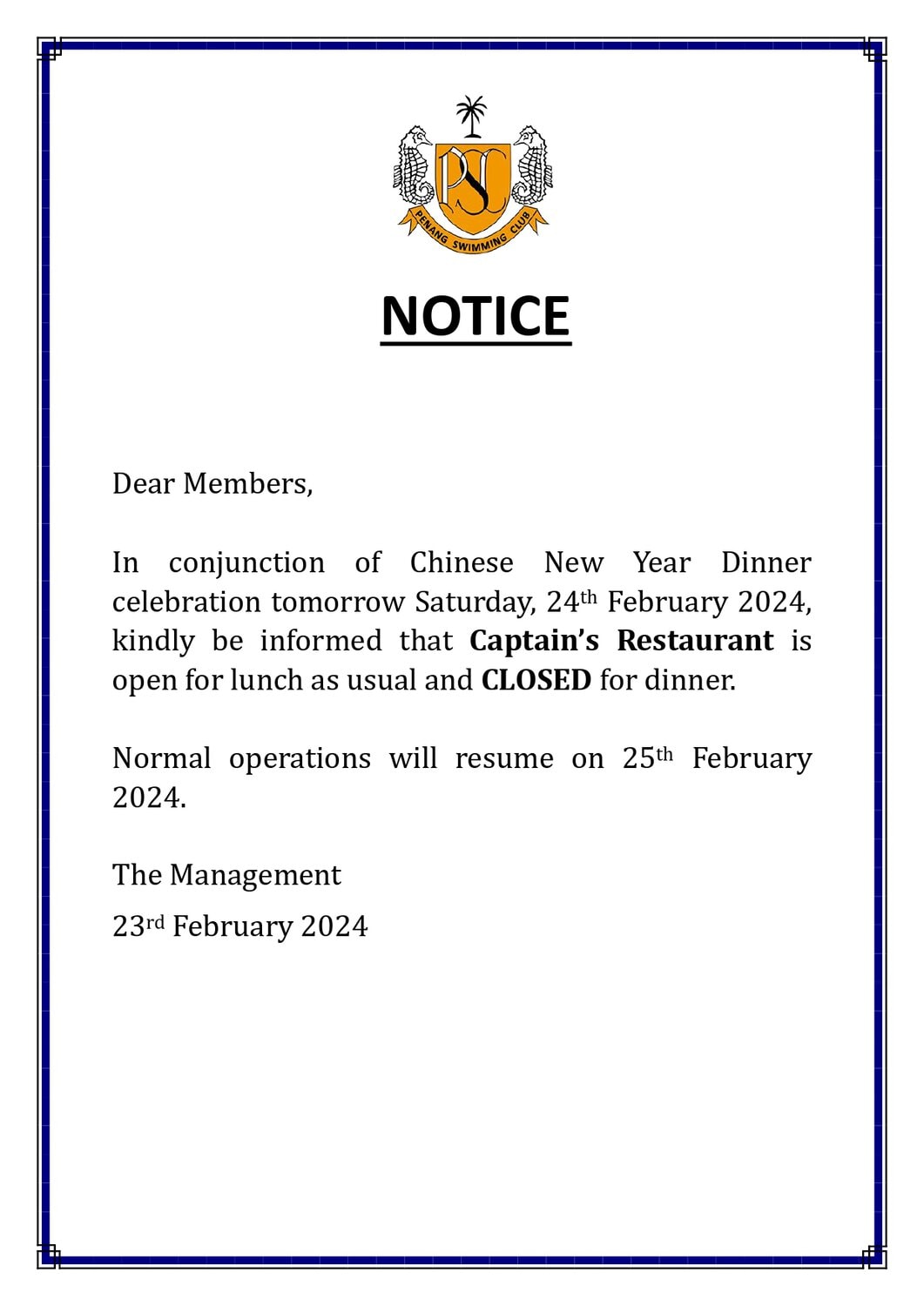 Club Notice